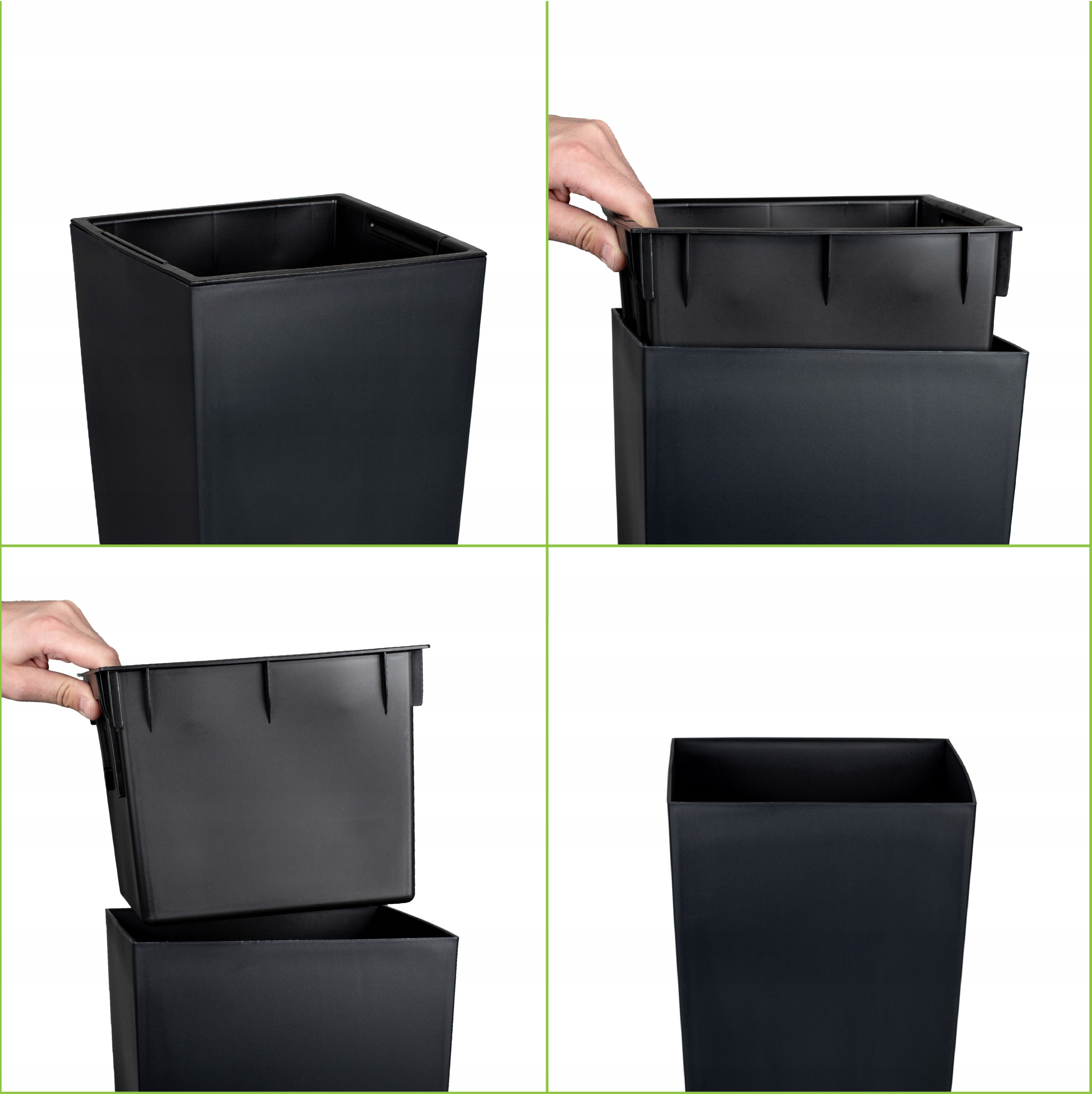 - Lekkość i stabilność: Mimo znacznych rozmiarów, donica jest łatwa w przestawianiu, a szeroka, kwadratowa podstawa zapewnia jej stabilność nawet przy wyższych roślinach.