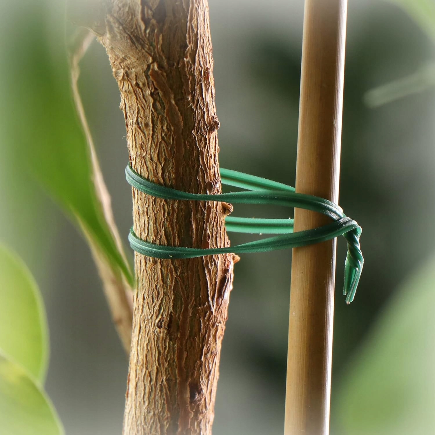 Ochrona roślin: Miękka, zielona powłoka zapobiega wrzynaniu się drutu w łodygi i gałęzie, chroniąc roślinę przed uszkodzeniami i infekcjami.