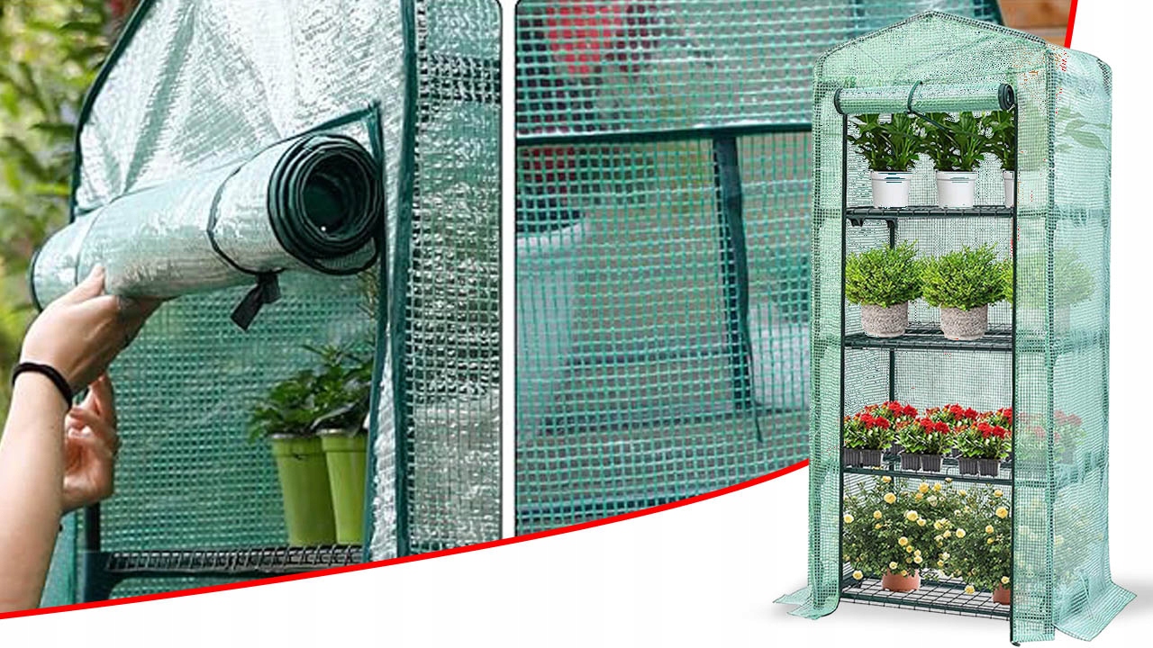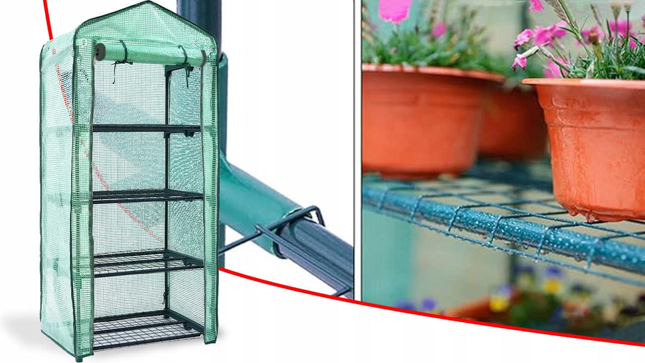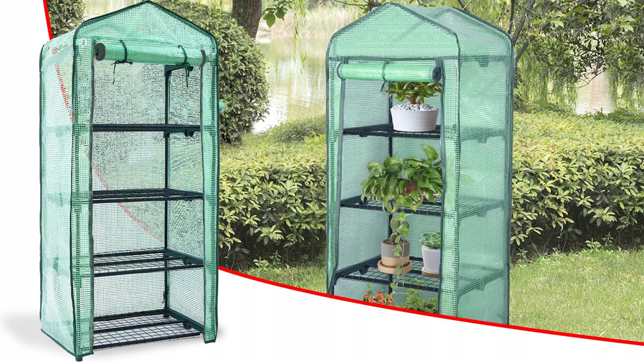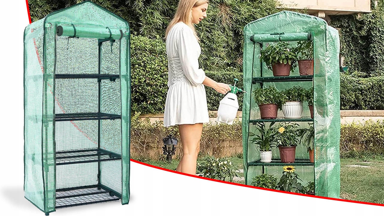 SZKLARNIA FOLIOWA BALKONOWA MINI OGRODOWA WARZYWNIAK MESH FOLIAK 4 PÓŁKI