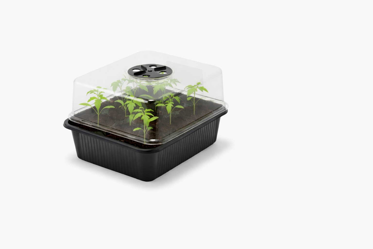 • INTELIGENTNA WENTYLACJA: Przezroczysta pokrywa wyposażona jest w obrotowy wywietrznik. Pozwala on na precyzyjną kontrolę wilgotności i temperatury wewnątrz, co zapobiega gniciu nasion i parowaniu nadmiaru wody.