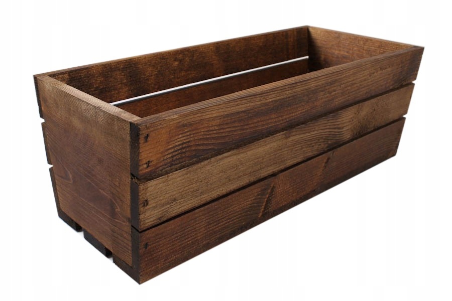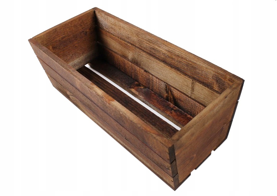 BRĄZOWA DREWNIANA SKRZYNKA NA KWIATY I ZIOŁA 40x18x15h cm