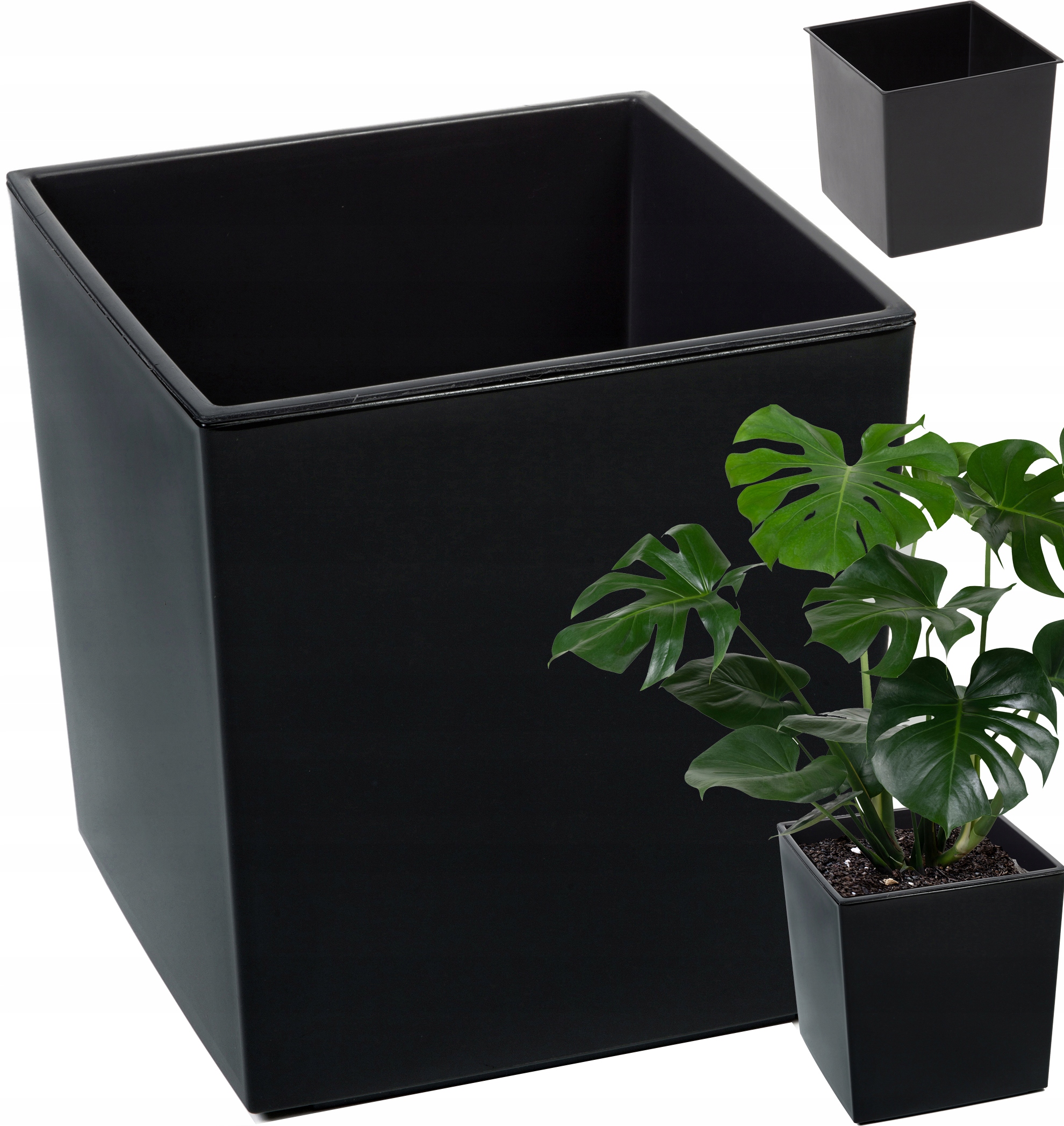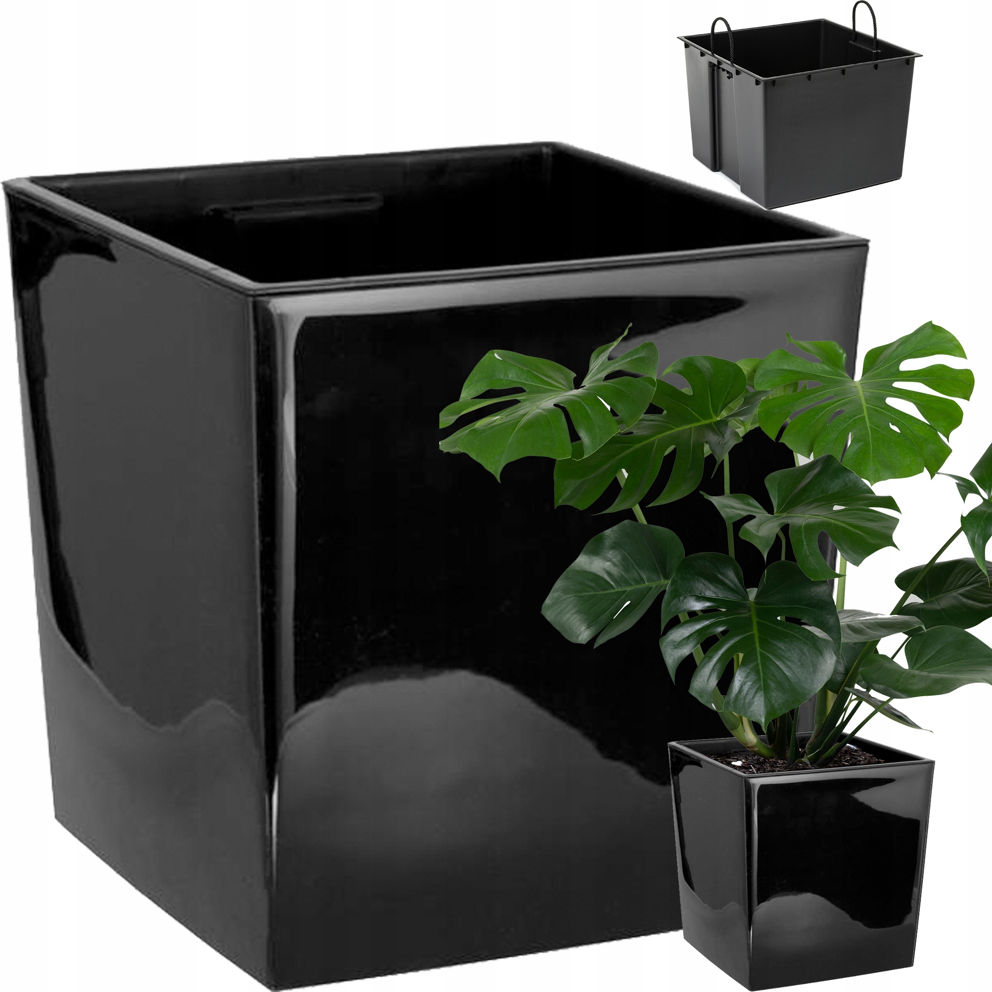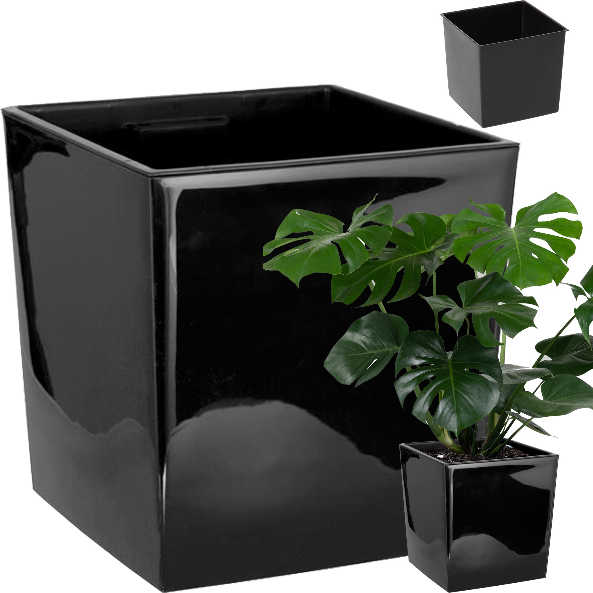 Stylowa DONICA OGRODOWA Czarny POŁYSK Kwadratowa 30×30 Cm + WKŁAD Mocna