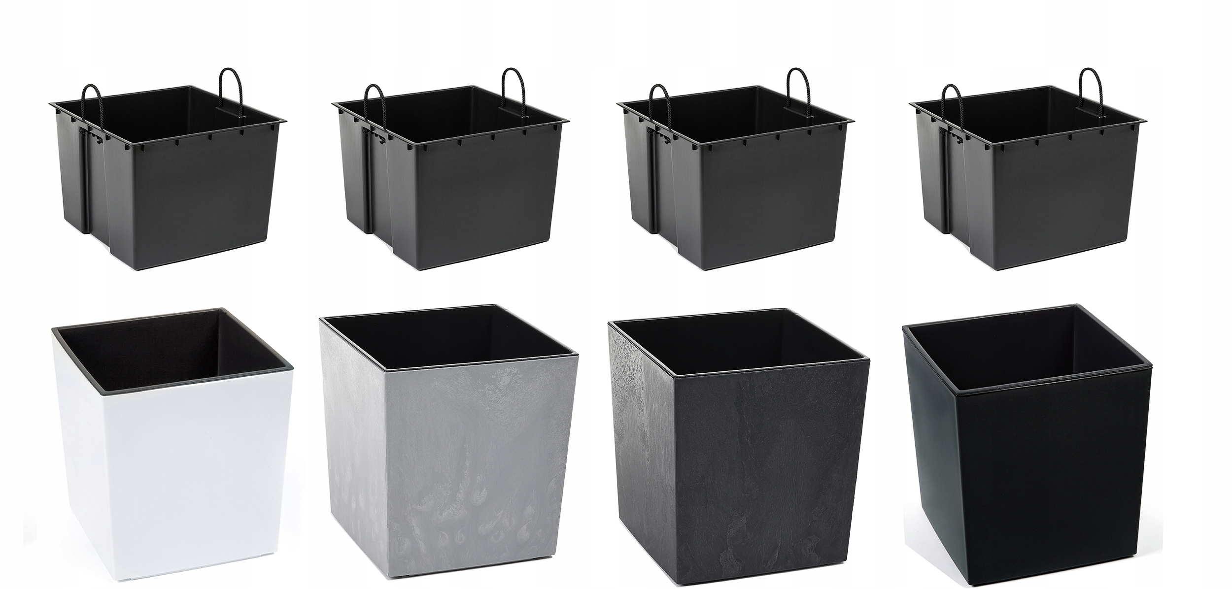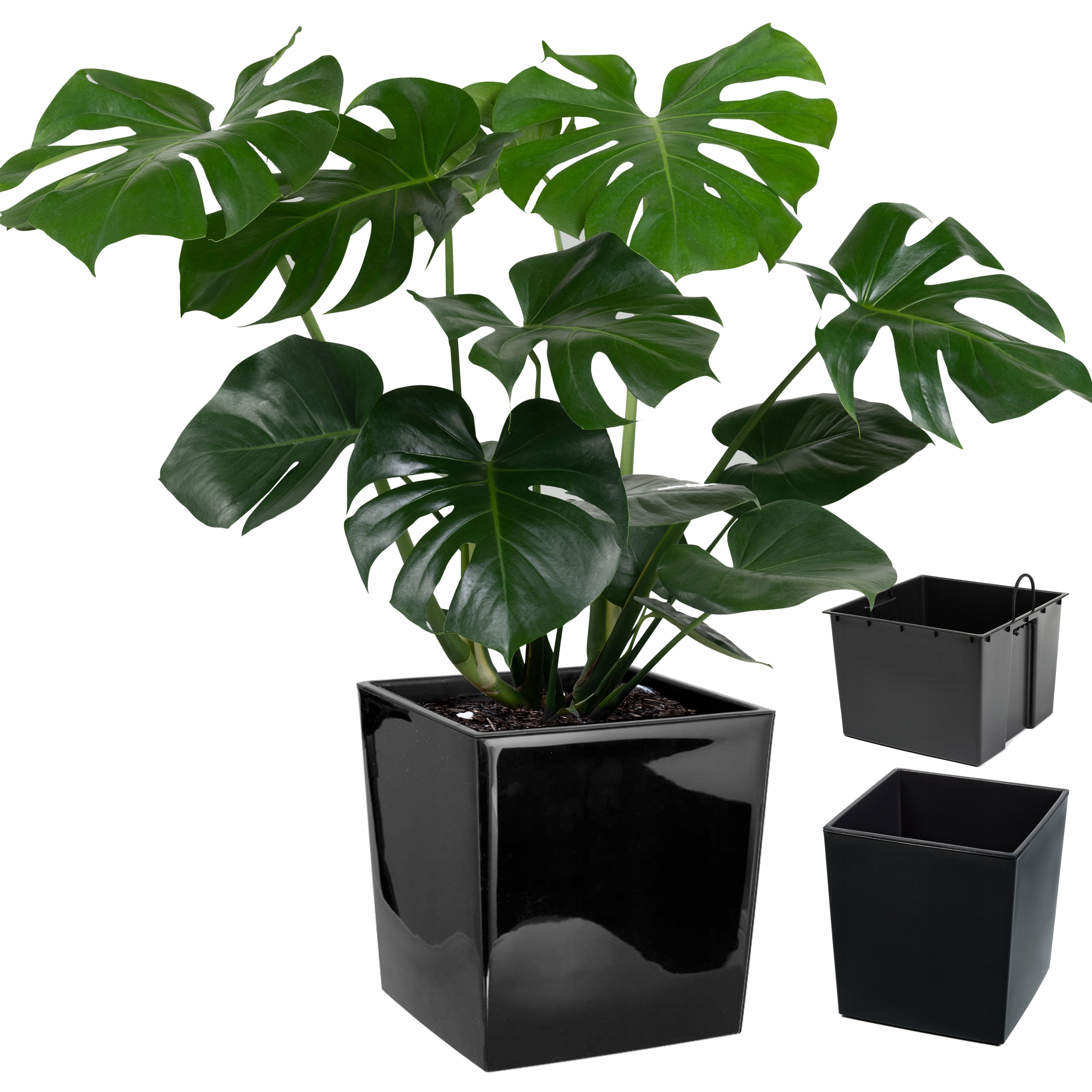 - 1x Donica kwadratowa: Konstrukcja o gładkich, błyszczących ściankach.