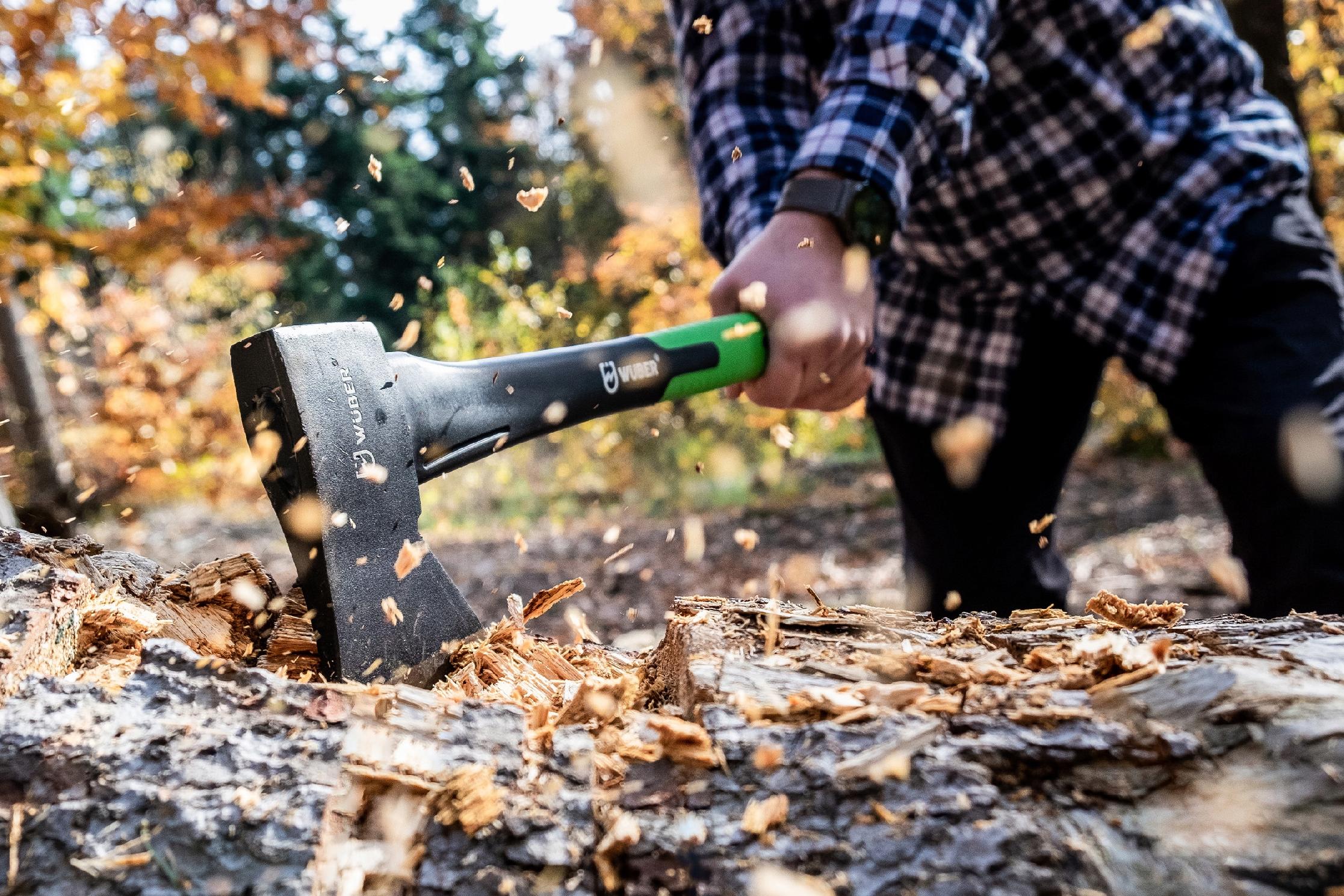 - KOMPAKTOWY ROZMIAR: Długość 38 cm oraz waga 600g sprawiają, że siekiera zmieści się w każdym plecaku i jest łatwa do transportu, będąc jednocześnie wystarczająco silną do rąbania grubszego drewna.