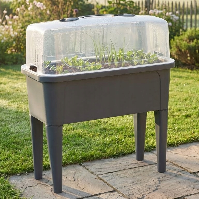 • KONTROLOWANY MIKROKLIMAT: Przezroczysta pokrywa z tworzywa sztucznego tworzy efekt cieplarniany – zatrzymuje wilgoć i ciepło wewnątrz, co jest kluczowe dla sukcesu uprawy pomidorów, papryki czy ziół.
