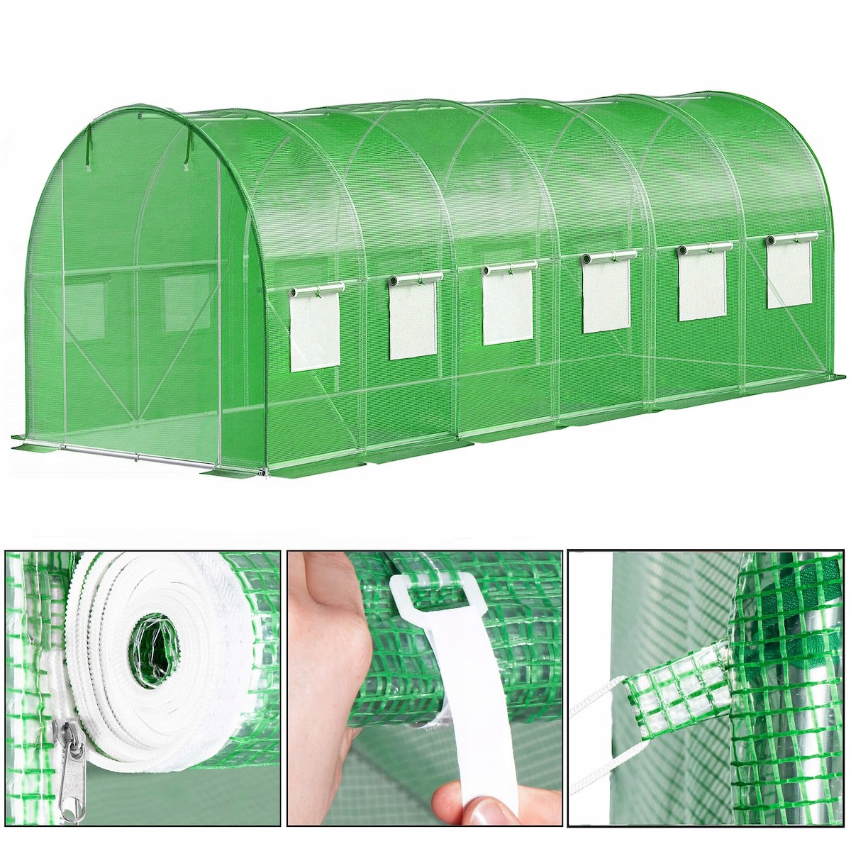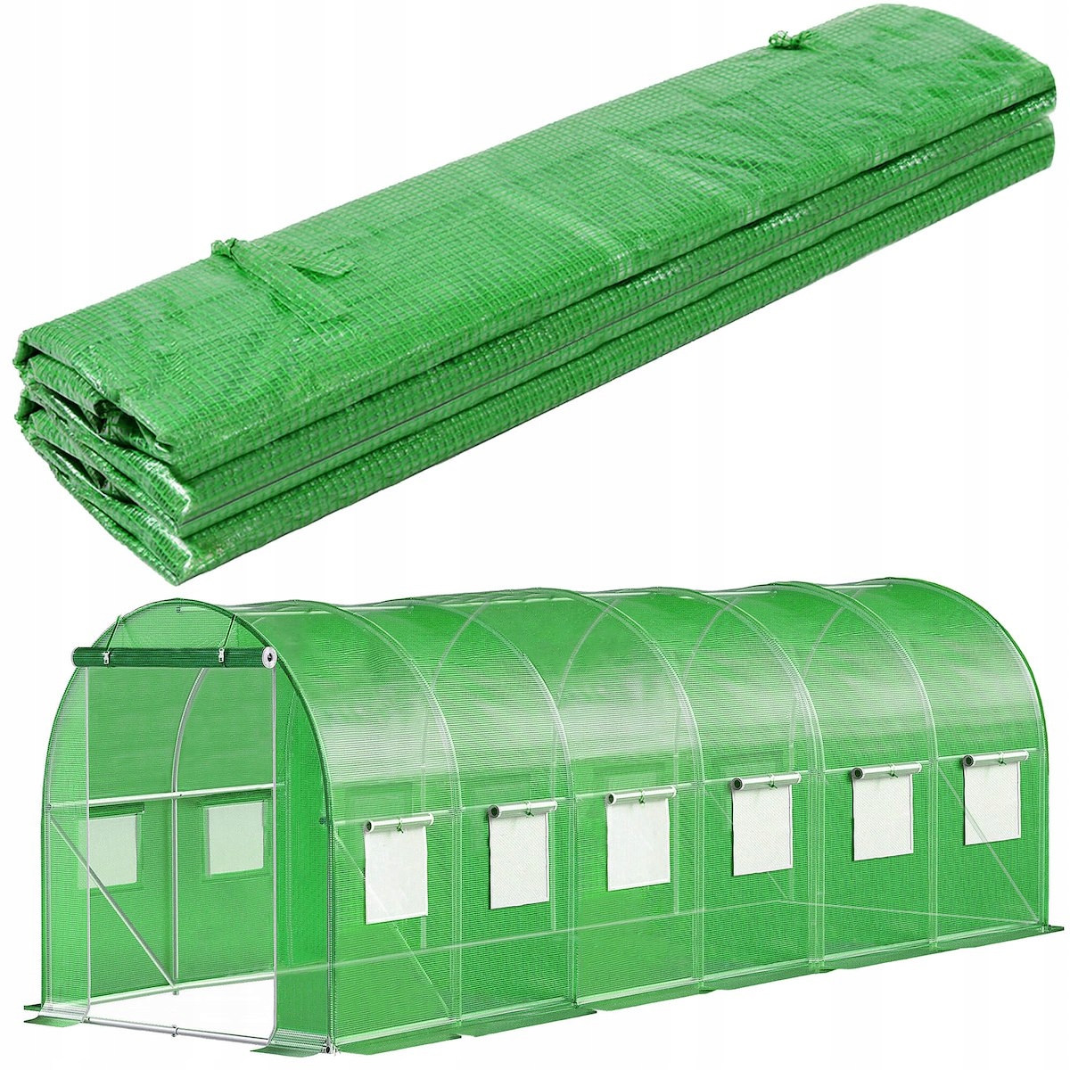 SZKLARNIA TUNEL FOLIOWY SPRINGOS 18m2 600×300 cm Zielony 13 Okien Filtr UV4
