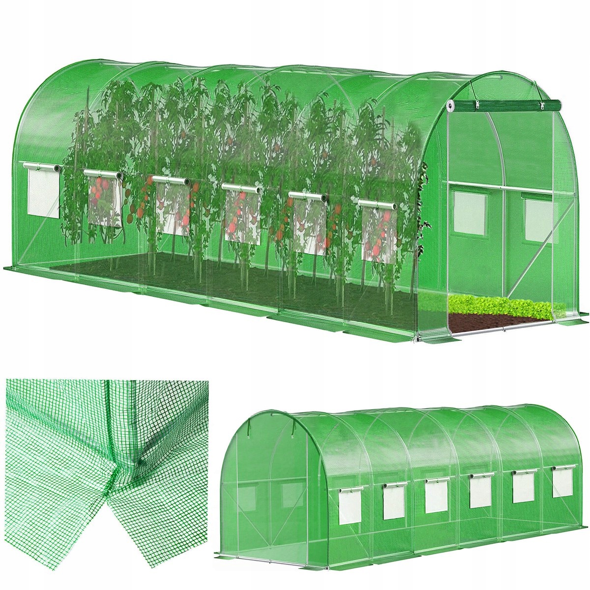 • AŻ 13 OKIEN WENTYLACYJNYCH: Unikalna konstrukcja z trzynastoma oknami (po 6 na bokach i jedno z tyłu) zapewnia perfekcyjną cyrkulację powietrza. Wszystkie okna wyposażone są w moskitiery, które chronią uprawy przed niechcianymi owadami.